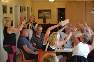 trevligt umgänge, lunchmusik och en liten lägerfest med sång